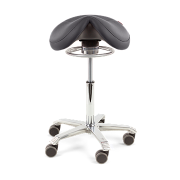 The shape of the Amazone seat facilitates the most open hip angle. Your weight is divided evenly across the seat and the floor. The Amazone seat strikes the best possible balance between the control and healthy posture of ‘standing’, and the comfort of ‘sitting’