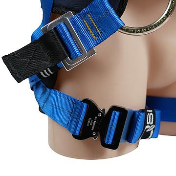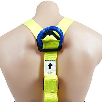 The nonconductive dorsal webbing attachment loop, and neoprene sheaths over the lower sternal adjustment buckles provide glove and barrier protection from the waist up for use in high voltage electrical applications.