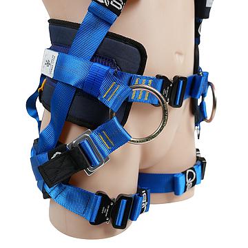 The lateral O-rings allow the user full control over their positioning while using a work positioning strap. The position of the lateral O-rings, padded waist belt and adjustable padded support seat ensures superior comfort to the user when restrained over long periods of time. Other features include high strength, aluminium quick release buckles on the waist and legs.